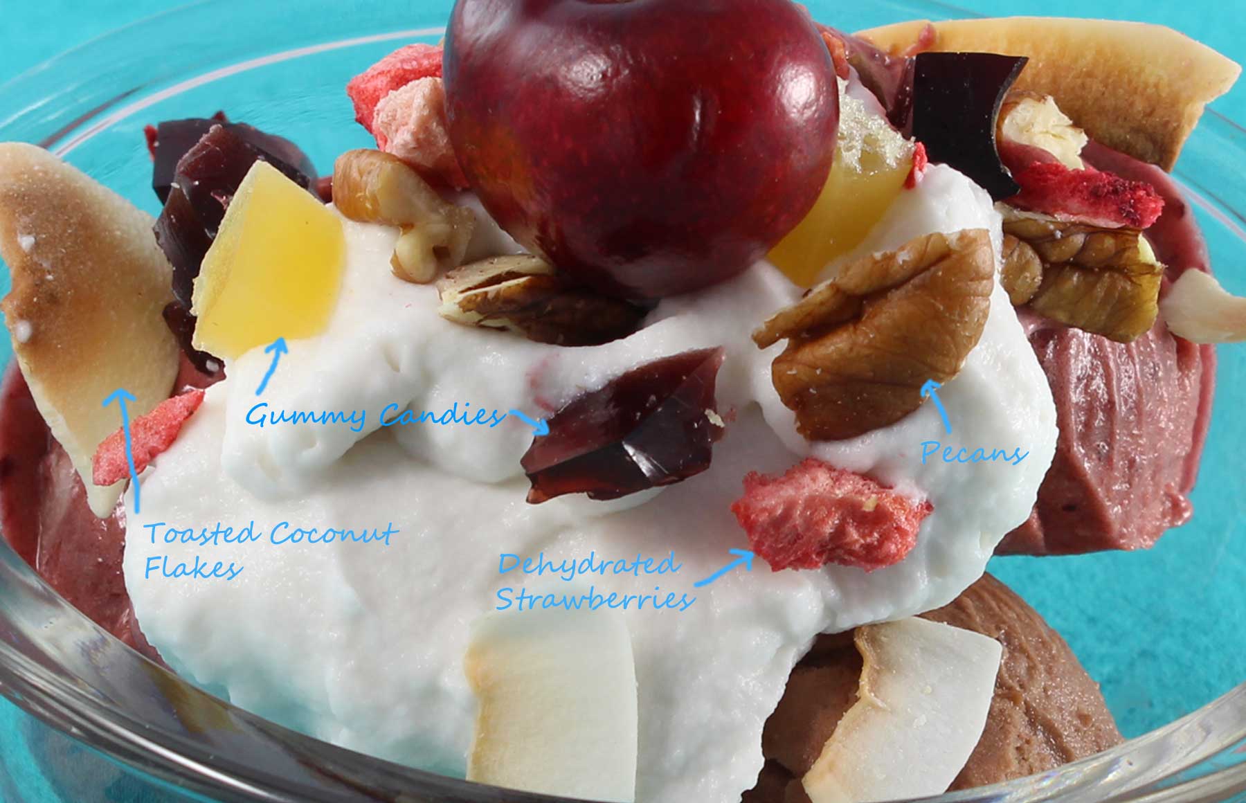 Photo: Colorful Sweet Potato cake with coconut whipped “cream” frosting, homemade gummies, and cupcake guys.