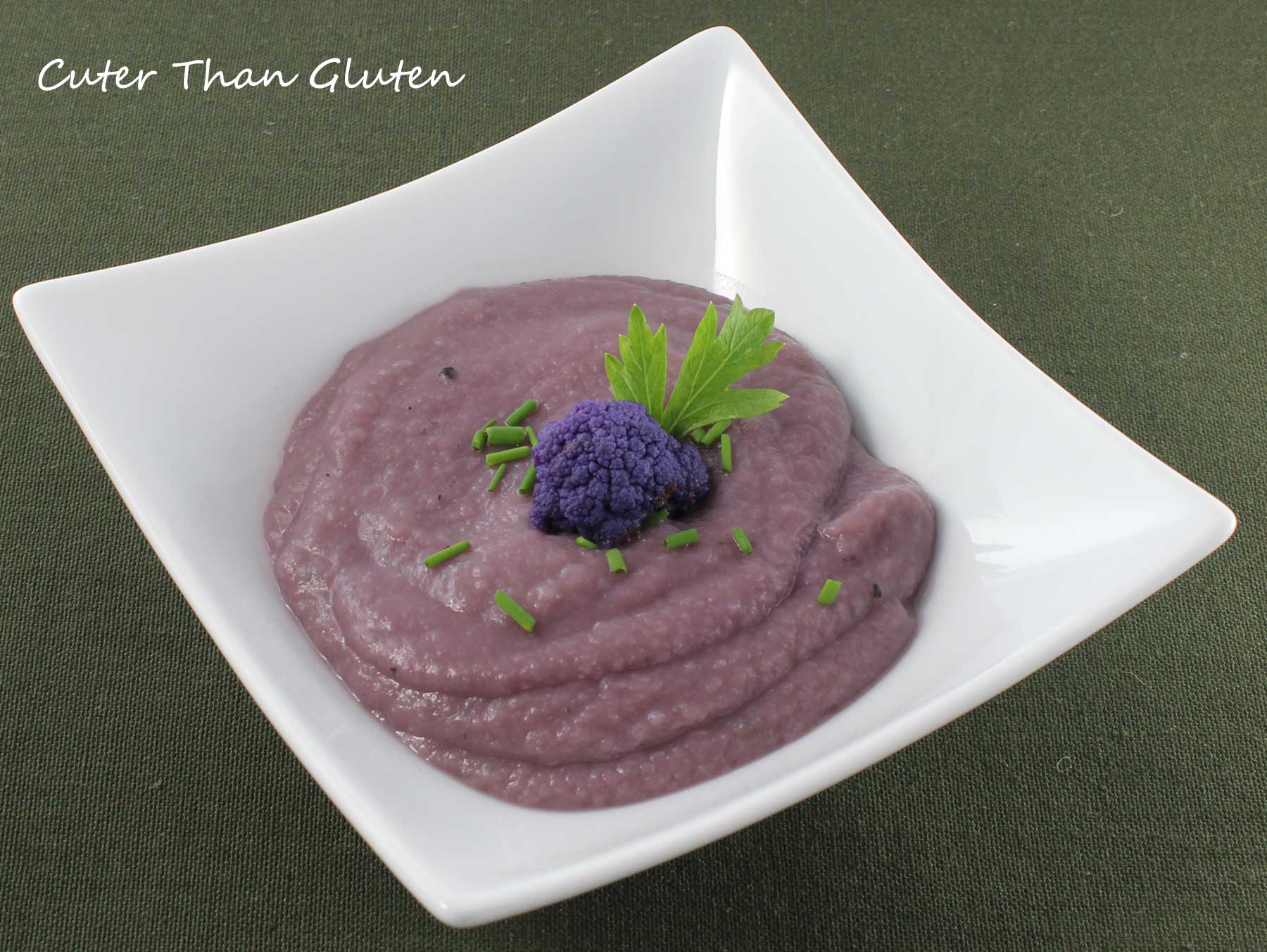 Soup: 1 white sweet potato (wish I had a purple one!), 1 small head purple cauliflower, 2 cups stock, 1/2 onion, herbamare to taste